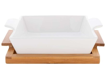 Keramická miska na pečenie na bambusovej podložke Florina Modeno - ideálna na pečenie v mikrovlnnej rúre alebo rúre do 160 stupňov. Produkt je tiež ideálny na podávanie rôznych druhov jedál, napr. Šalátov, knedlí, duseného mäsa alebo iných pokrmov. Bambusová základňa bude nielen pekne vyzerať na stole, ale tiež vám umožní nosiť teplé jedlá bez strachu z popálenia.