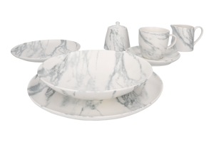 Porcelán MAVIS je kombináciou modernosti, najvyššej kvality, funkčnosti prvkov a jedinečného dizajnu, ktorý uspokojí aj tých najnáročnejších zákazníkov, čo sa týka úžitkovej aj estetickej stránky. Moderný dizajn našej súpravy a sofistikované mramorové dekorácie odkazujúce na surovú formu kamennej architektúry ju odlišujú medzi konkurenčnými návrhmi na trhu s keramikou. Celá sada vytvára jediný súvislý celok, ktorý obsahuje ťažko kombinovateľné prvky: bohatý vzor, dokonalosť klasickej formy a funkčnosť. Každý prvok bol špeciálne navrhnutý tak, aby kombinoval silný charakter značky Zwieger s najnovšími svetovými trendmi v oblasti dekorácie. Porcelán MAVIS navyše spĺňa najprísnejšie štandardy kvality. Vyznačuje sa mimoriadnou tvrdosťou s indexom belosti približne 75% a priesvitnosťou 20 - 27%. Vďaka vysokej teplote výpalu (asi 1400 stupňov Celzia) je každý prvok súpravy veľmi odolný voči mechanickým faktorom (ako je napríklad odieranie skloviny pri častom používaní alebo ručné umývanie) a chemickým faktorom (kyseliny a zásady obsiahnuté v riadoch a čistiacich prostriedkoch).
