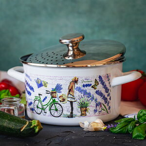 Moderná verzia obľúbeného smaltovaného riadu s dekorom levandule.