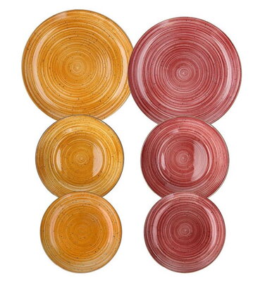 18-dielna súprava tanierov z porcelánu Macis je súčasťou značky známej Talianskej značky Tognana a pozostáva z 6 plytkých tanierov, 6 tanierov na polievku a 6 dezertných tanierov v teplých odtieňoch oranžovej a hnedej. Táto sada riadu je ideálna pre každé ročné obdobie a na každodenné aj formálne použitie. Je vhodná do umývačky riadu a vhodná do mikrovlnnej rúry.