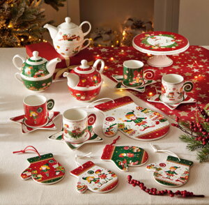 Rozprávka pre malých aj veľkých: Elfomágia prináša na stôl vitalitu, šíri teplo a spolupatričnosť s plyšovými škriatkami. Vianočné ozdoby a hrejivé farby ako prikrývka pokoja, pod ktorou sa môžete schúliť a usmievať sa. Taniere, podnosy, podnosy....šálky a hrnčeky: potom ďalšie kanvice na kávu, poháre, sviečky, čajové lyžičky a mnoho ďalšieho, čo môžete objaviť v našej ponuke s týmto vzorom. Nech je to tanec plný živosti, náklonnosti a energie: veď je to tá najčarovnejšia noc, aká existuje!